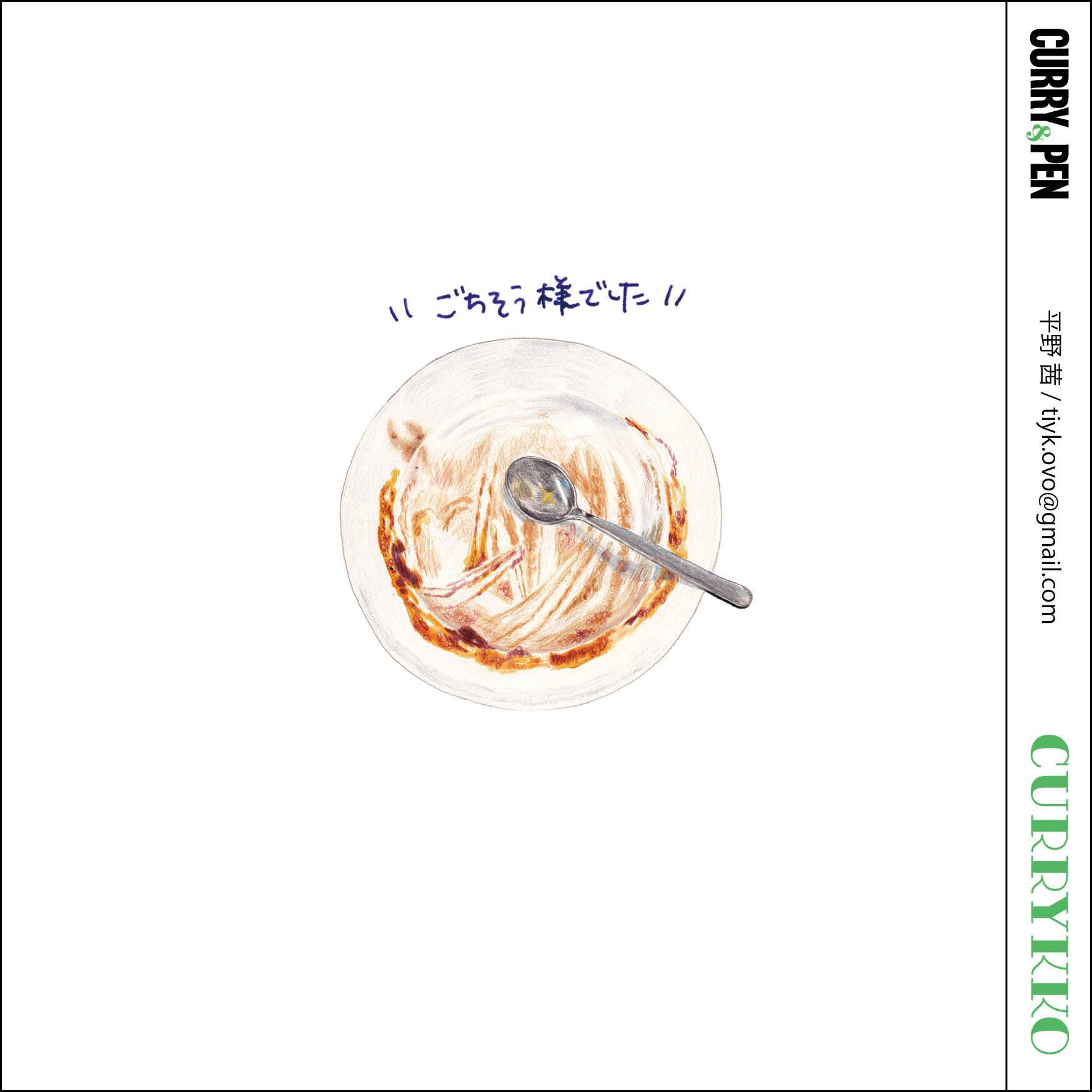 二十歳のころから約十年、出会いの感動をとどめおきたいという思いは変わることなく、目の前の湯気が立つ姿を心に刻みながらカレーを描いている。